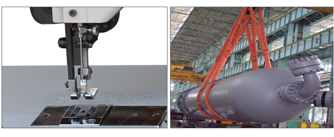 thick?materials. Specially designed machine body has strong rigidity and spacious operation table is able to sewlarge-scale objeots easily. Drivers withlarge inel'tia generate the huge puncture force. Synchronous feeding mode of?feed dog and presser is especially suitable for?thick and multilayer materials. Even though the material?is easy to be slipping and sticky, it is also easy to sew the material?by this kind of sewing machine with high proficiency. This machine adopts cam to take-up?thread andlarge semi-rotating shuttle to hook?thread withless change of?bottom?thread. lt is an?ideal device forsewing safety belt, horse gear, leathersuitcase, buff?wheel, tent,?sails, bonnet and bookbinding.